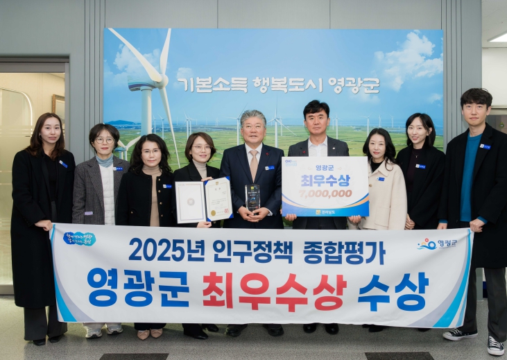 [뉴스앤톡] 영광군은 2025년 전라남도가 주관한 「전라남도 인구정책 우수 시‧군 평가」에서 ‘최우수상’을 수상했다고 밝혔다.