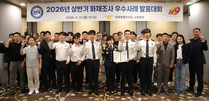 [뉴스앤톡] 전북특별자치도 소방본부는 13일 전주 라한호텔에서 2026년 상반기 화재조사 우수사례 발표대회를 개최하고 화재조사 우수사례를 공유하며 화재조사관들의 전문성 강화와 보고서 품질 향상을 도모했다.