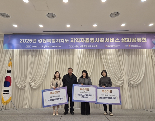[뉴스앤톡] 강원특별자치도 사회서비스원 소속 강원지역사회서비스지원단은 11월 2일 춘천세종호텔에서 ‘2025년 강원 지역자율형 사회서비스 성과공유회’를 개최했다고 밝혔다.