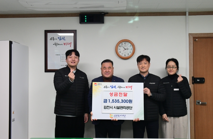 [뉴스앤톡] 김천복지재단은 지난 26일, 김천시 시설관리공단으로부터 성금 1,535,300원을 전달받았다고 밝혔다.