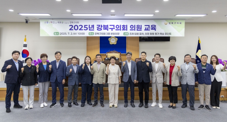[뉴스앤톡] 강북구의회는 지난 7월 2일 의회 3층 본회의장에서 ‘조례 입법 절차’와 ‘의정활동 평가 핵심 포인트’를 주제로 2025년 의원 교육을 실시했다.