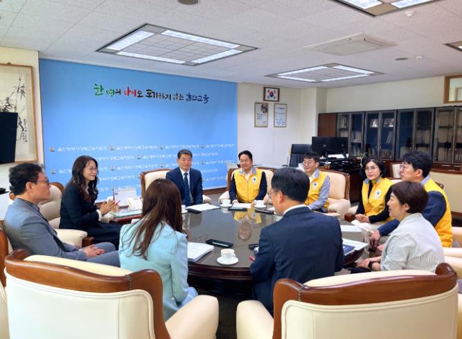| ▲ 강북교육지원청 한성기 교육장과 울산나눔회 회원들이 29일 교육장실에서 '어린이날 행복 나눔 꾸러미' 전달 협의회를 하고있다 |