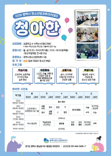 2026 평택시 청소년방과후아카데미 ‘청아한’ 신입생 모집