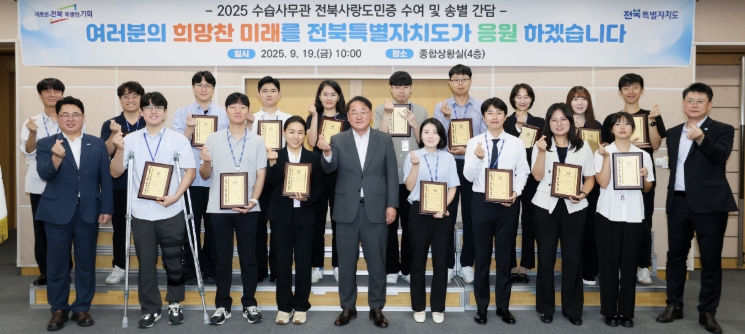 [뉴스앤톡] 전북특별자치도는 19일 도청 종합상황실에서 경제부지사 주재로 ‘2025년 국가직 수습사무관 전북사랑도민증 수여 및 송별 간담회’를 개최했다.