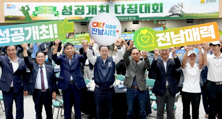[뉴스앤톡] 전라남도는 22일 도청에서 김영록 전남도지사, 서남권 6개 시군 음식·숙박·관광업계 대표, 함평골프고 학생, 체육관계자 등 200여 명이 참석한 가운데 LPGA BMW 레이디스 챔피언십 성공개최를 위한 다짐대회를 열었다.