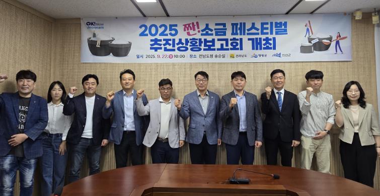 [뉴스앤톡] 전라남도는 22일 도청 송순실에서 2025 소금박람회 ‘짠! 소금 페스티벌’의 성공적 개최를 위한 추진상황 보고회를 열어 준비상황을 점검하고 향후 보완 사항 등을 논의했다고 밝혔다.