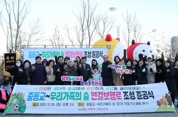 [뉴스앤톡] 박강수 마포구청장은 12월 30일 오후 2시, 중동교와 우리가족의 숲(구 선형의 숲) 3단계를 잇는 구간에서 열린 ‘중동교~우리가족의 숲 연결보행로 조성사업 준공식’에 참석했다.