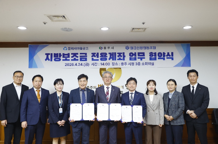 협약에 따라 칠금신용협동조합과 문화새마을금고는 △지방보조금 전용계좌 및 카드 개설·관리 △지방보조금관리시스템(보탬e) 연계 지원 △보조금 집행 관리 및 모니터링 등에 협력한다.