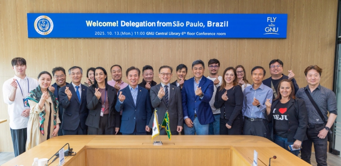 [뉴스앤톡] 경상국립대학교는 브라질 상파울루시 대표단이 10월 13일 오전 경상국립대학교를 내방하여 권진회 총장을 예방하고 우주항공, 문화콘텐츠, 미디어 분야의 협력 방안을 논의했다고 밝혔다.