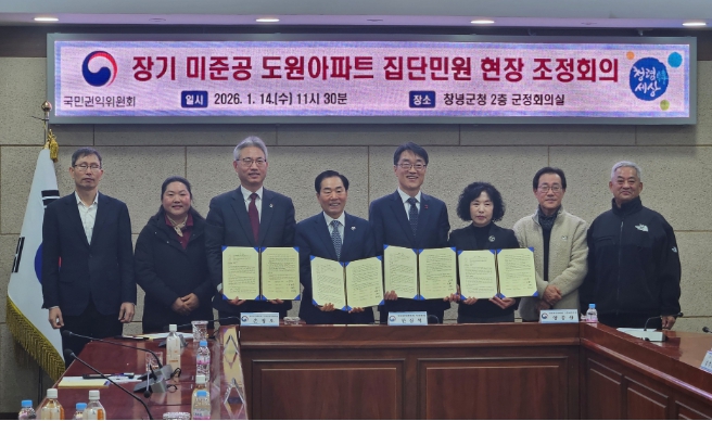 [뉴스앤톡] 경상남도는 14일 오전 11시 창녕군청에서 열린 국민권익위원회 공동주택 집단민원 현장조정회의에서 장기 미준공 공동주택 문제해결을 위한 조정 절차에 참여했다고 밝혔다.
