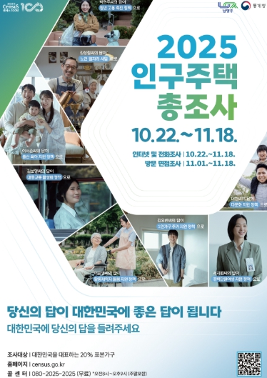 [뉴스앤톡] 남양주시는 2025 인구주택총조사가 10월 22일부터 11월 18일까지 실시된다고 밝혔다.