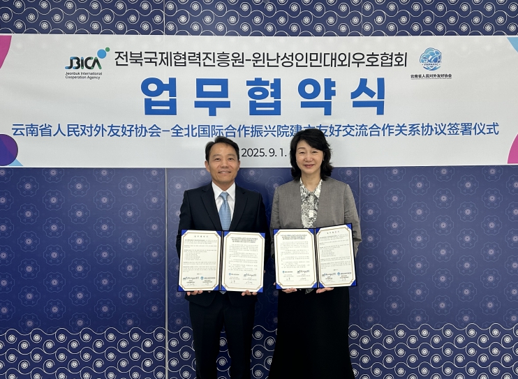 [뉴스앤톡] 전북국제협력진흥원은 9월 1일 중국 윈난성인민대외우호협회와 양 지역 간 우호 교류 및 협력 증진을 위한 업무협약(MOU)을 체결했다.