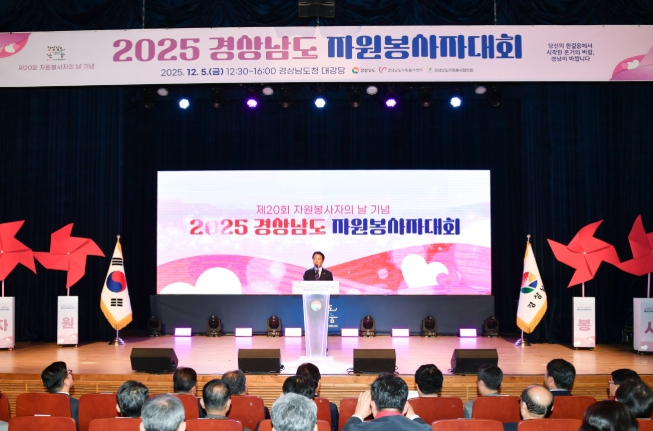 [뉴스앤톡] 경상남도의회 최학범 의장은 12월 5일, 도청에서 열린 ‘2025 경상남도 자원봉사자대회’에 참석해 자원봉사자들을 격려하고 유공자 수상자들에게 축하를 전했다.