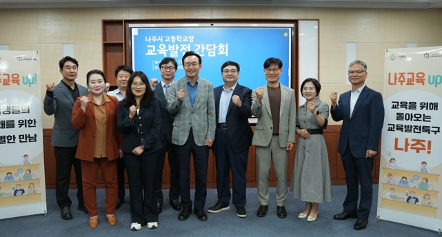 간담회에는 윤병태 나주시장을 비롯해 박찬주 나주미래교육지원센터장과 나주시 관내 8개 고등학교 교장이 참석했으며 학교 현장의 의견과 나주시 교육 지원 정책 방향을 공유하는 뜻깊은 시간을 가졌다.