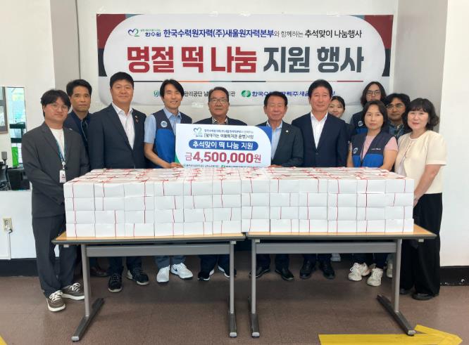 한국수력원자력(주)새울원자력본부는 이날 울주군 남부지역 어르신들을 위해 명절떡 280명분을 지원하여 지역에 나눔을 실천했다.