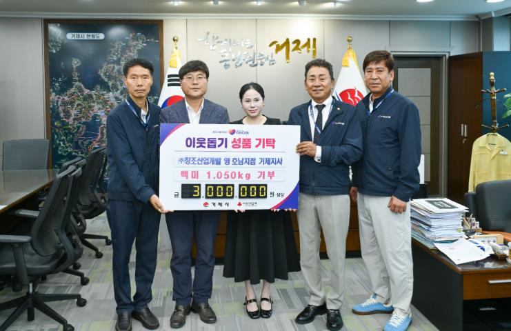 [뉴스앤톡] ㈜창조산업개발 영·호남지점 거제지사는 9월 29일 거제시청을 방문해 백미 1,050kg 약 300만 원 상당을 기탁하며 지역사회를 위한 따뜻한 나눔을 실천했다.