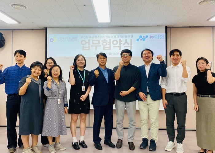 [뉴스앤톡] 부천여성청소년재단은 헬스테크 기업 뉴아인과 9월 22일 복사골문화센터 6층 부천시일쉼지원센터에서‘지속 가능한 가치공유 및 사회공헌 활성화를 위한 업무협약’을 체결했다.