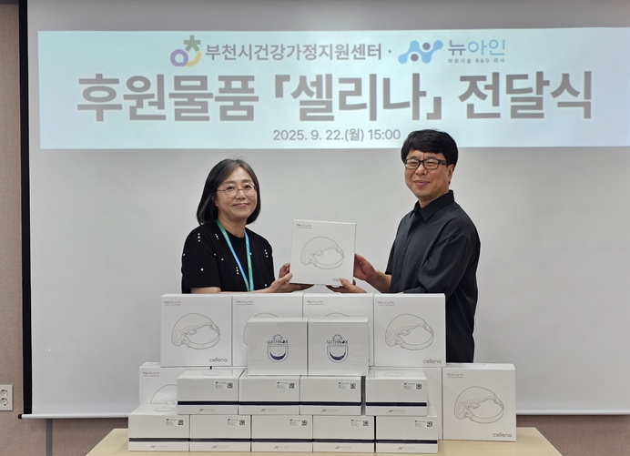 [뉴스앤톡] 부천시건강가정지원센터는 헬스테크 스타트업 ㈜뉴아인으로부터 건강보조기기(위드녹스, 셀리나 등)를 후원받아 지역사회 가정에 실질적인 지원을 이어가게 됐다.