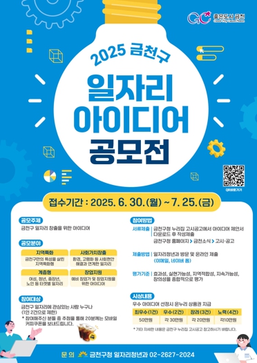 구는 금천구에 특화된 일자리를 창출할 수 있는 아이디어를 모집하기 위해 공모전을 마련했다. 지속 가능하고 일자리 창출 효과에 기여할 수 있는 아이디어를 발굴해 향후 구정에 반영할 예정이다.