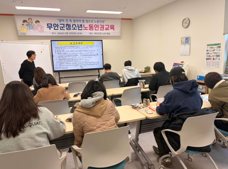 [뉴스앤톡] 무안군청소년수련관은 지난 13일 관내 고등학생과 학교 밖 청소년을 대상으로 청소년 노동인권교육을 운영했다고 밝혔다.