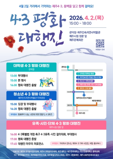 이어 “이번 평화 대행진이 제주4·3을 우리 모두가 함께 기억하고 이어가야 할 역사로 확장하는 계기가 될 것”이라고 덧붙였다.