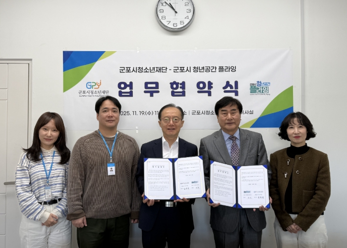 [뉴스앤톡] 재단법인 군포시청소년재단은 11월 19일 대표이사실에서 군포시청년공간플라잉과 청소년·청년의 성장 연계 및 참여 지원을 위한 업무협약을 체결했다.