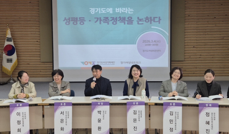 [뉴스앤톡] 경기도여성가족재단이 4일 ‘경기도에 바라는 성평등·가족 정책을 논하다’를 주제로 토론회를 열고 경기도 성평등 및 가족분야 정책방향을 논의했다.
