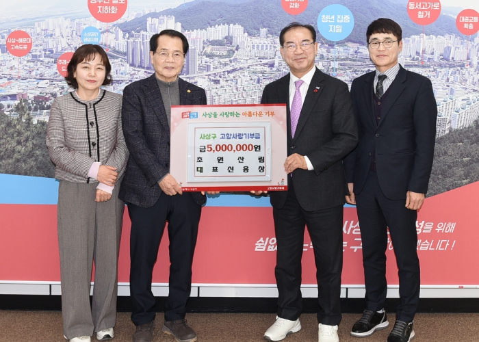 사상구는 지난 12월 30일, 경관옹벽전문회사 ㈜서호에코탑 한상수 대표, 건축·조경자재 전문업체 ㈜초원산림 신용상 대표가 각각 고향사랑기부금 500만 원을 기탁 했다고 밝혔다.