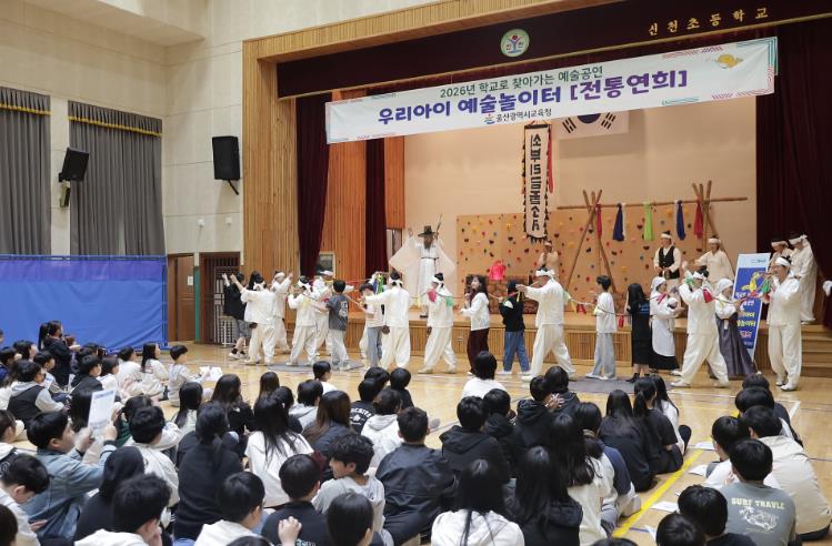 지난 30일 북구 신천초등학교의 현장 사례가 이번 사업의 의미를 잘 보여준다. 울산광역시 무형유산인 ‘울산 쇠부리 소리’ 공연이 열렸다.