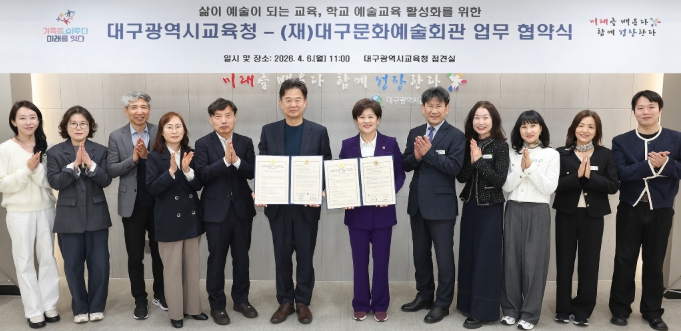 [뉴스앤톡] 대구시교육청은 4월 6일 오전 11시, 대구시교육청 접견실에서 (재)대구문화예술회관과 ‘학교 예술교육 활성화’를 위한 업무협약(MOU)을 체결했다.
