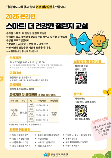 | ▲ 충북교육청, 학생 건강 생활 습관 형성을 위한 '스마트! 더 건강한 챌린지 교실' 운영 |