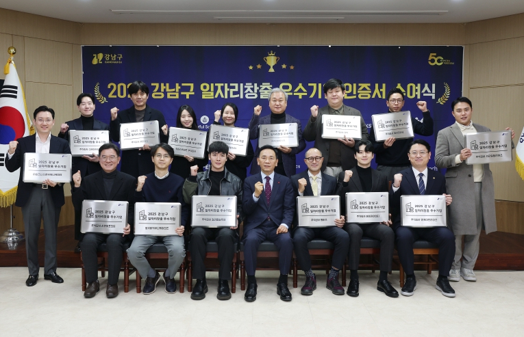 [뉴스앤톡] 꿈이 모이는 도시, 미래를 그리는 강남구가 관내 일자리 창출에 기여한 우수기업 15개사를 선정하고 24일 인증서와 현판을 수여했다.