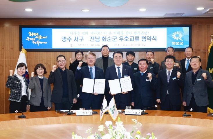 [뉴스앤톡] 화순군은 지난 10일 광주광역시 서구와 상호 협력 및 공동 발전을 위한 우호교류 협약을 체결했다고 밝혔다.
