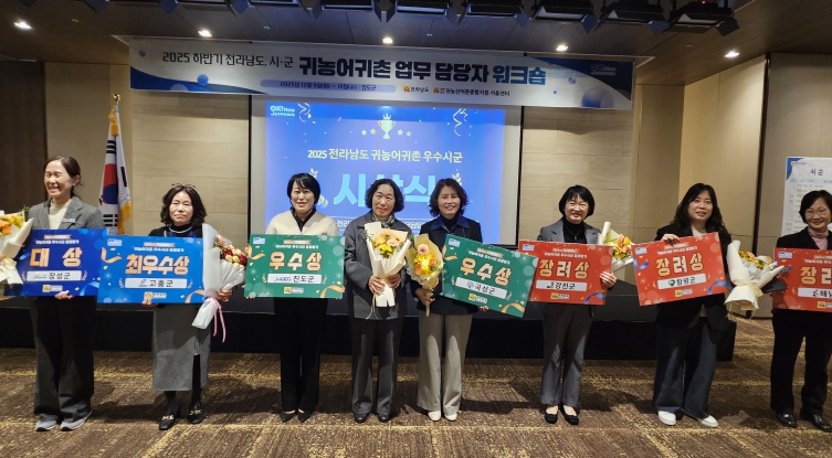 [뉴스앤톡] 전라남도는 10일까지 이틀간 진도 쏠비치에서 도·시군 귀농어귀촌 업무담당자 워크숍을 열어 귀농어귀촌 교육과 홍보, 유입실적 등에서 높은 평가를 받은 장성군에 ‘2025 귀농어귀촌 업무 종합평가’ 대상을 수여했다.