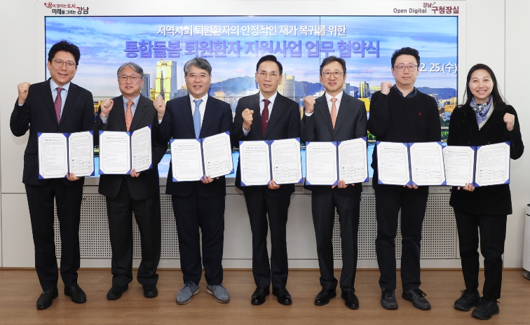 [뉴스앤톡] 꿈이 모이는 도시, 미래를 그리는 강남구가 퇴원 이후 돌봄 공백을 줄이고 지역사회 중심의 돌봄 체계를 강화하기 위해 2월 25일 구청에서 관내 6개 의료기관과 '통합돌봄 퇴원환자 지원사업' 추진을 위한 업무협약(MOU)을 체결했다. 협약 기관은 삼성서울병원, 연세대학교의과대학 강남세브란스병원, 강남베드로병원, 나누리병원, 메드렉스병원, 강남구립행복요양병원이다.