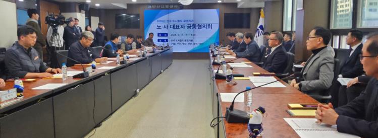 [뉴스앤톡] 광주교통공사를 비롯해 서울·부산·대구·인천·대전 등 전국 6개 도시철도 운영기관 노사 대표자들이 11일 부산교통공사 본사에 모여, 도시철도 법정 무임승차로 발생하는 손실에 대한 국비보전 법제화를 촉구하는 공동 회의를 개최했다.