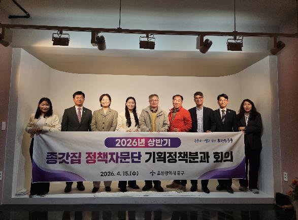 [뉴스앤톡] 울산 중구가 4월 15일 오전 11시 학성가구거리 활력센터에서 ‘2026년 상반기 종갓집 정책자문단 기획정책분과 회의’를 개최했다.