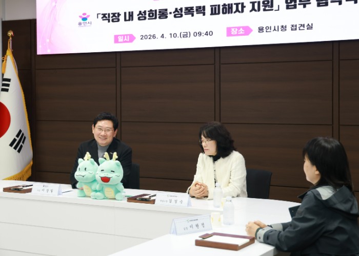 [뉴스앤톡] 용인특례시는 10일 시청 접견실에서 용인성폭력상담소와 ‘직장 내 성희롱·성폭력·스토킹 및 2차 피해자 지원을 위한 업무협약’을 체결했다.