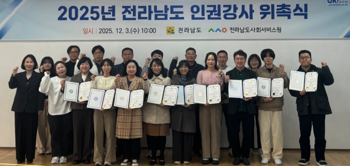 심재명 전남도 자치행정과장은 “인권은 법과 제도만으로는 실현될 수 없으며 교육과 실천이 함께해야 한다”면서 “인권강사가 도민 곁에서 인권의 가치를 일깨우고, 누구나 존중받는 전남을 만드는데 핵심 역할을 해주길 바란다”고 말했다.