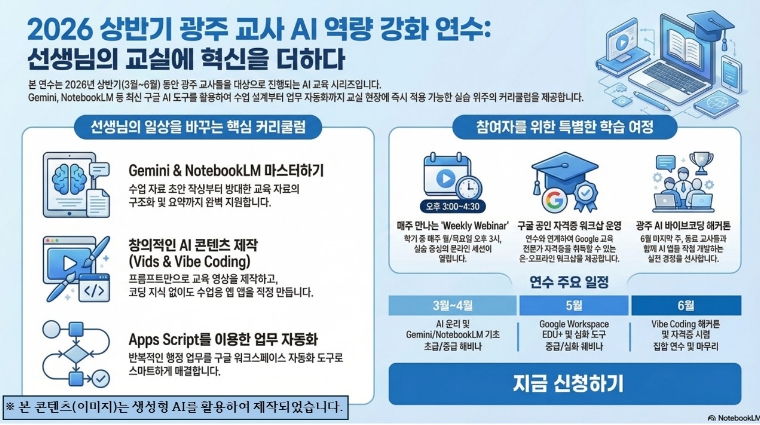 ▲ [포스터] 광주시교육청, 생성형 AI 활용 ‘맞춤형 교원 연수’ 운영
