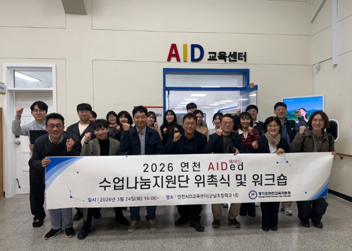 [뉴스앤톡] 경기도연천교육지원청은 지난 3월 24일 연천 AID교육센터에서 관내 초·중·고 교원 26명으로 구성된 ‘2026 연천 에이드(AIDed) 수업나눔지원단’의 제1차 학습공동체 및 위촉식을 개최했다. 이번 지원단 운영은 경기도교육청의 핵심 사업인 ‘하이러닝’ 플랫폼 활성화와 ‘AI 서·논술형 평가’의 현장 안착을 지원하기 위해 마련됐다.