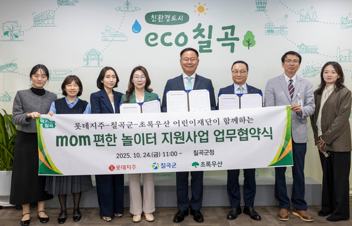 [뉴스앤톡] 지난 24일, 칠곡군은 롯데그룹과 초록우산 어린이재단이 함께하는 ‘mom 편한 놀이터 조성을 위한 업무협약을 체결했다.