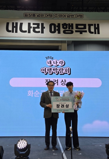 [뉴스앤톡] (재)화순군문화관광재단(이사장 구복규)은 지난 3월 19일부터 22일까지 서울 코엑스 마곡 전시장에서 열린 '2026 내나라 여행박람회'에서 우수부스로 선정돼 장려상을 수상했다고 밝혔다.
