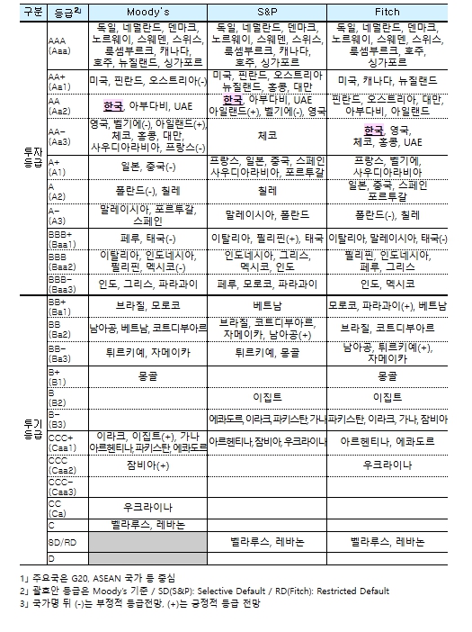 ▲ 주요국1」 국가신용등급 비교 ('26.1월 기준)