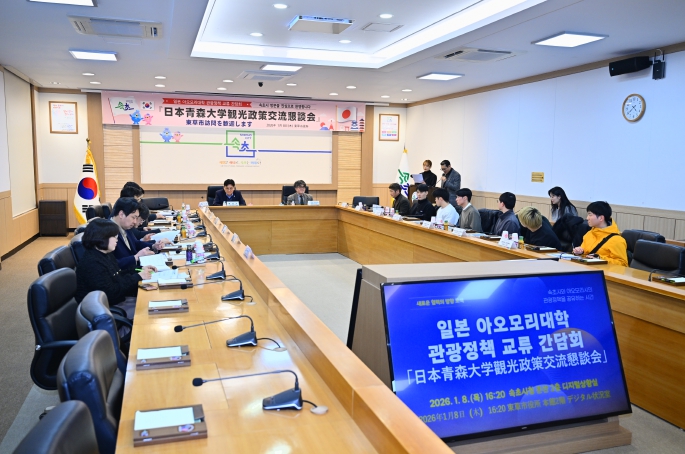 [뉴스앤톡] 속초시가 2026년 1월 8일 일본 아오모리대학 관계자들과 관광정책 간담회를 열고, 속초시와 일본 아오모리시 간 관광 교류 협력방안을 논의했다. 이날 아오모리대학 교수와 학생 등 8명이 속초시를 방문했다.