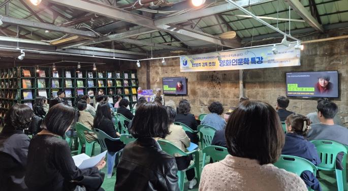 | ▲ 21일 목포 남도책방에서 변영주 영화감독 초청 영화인문학 특강이 이뤄지고 있다. |