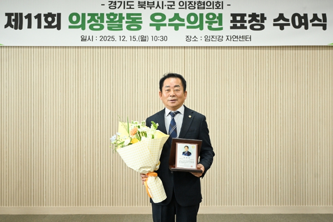 [뉴스앤톡] 의정부시의회 김연균 의장이 15일 연천군 임진강 자연센터에서 열린 ‘제11회 의정활동 우수의원 시상식’에서‘주민참여소통 부문’표창을 수상했다.
