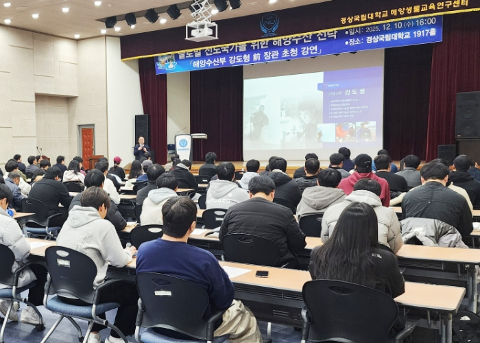 [뉴스앤톡] 경상국립대학교 해양과학대학은 12월 10일 해양생물교육연구센터에서 재학생 250여 명이 참석한 가운데 해양수산부 장관을 역임한 한국해양과학기술원 강도형 박사를 초청하여 ‘제4회 GNU 마린 드림 토크(Marine Dream Talk)!’를 성황리에 개최했다.
