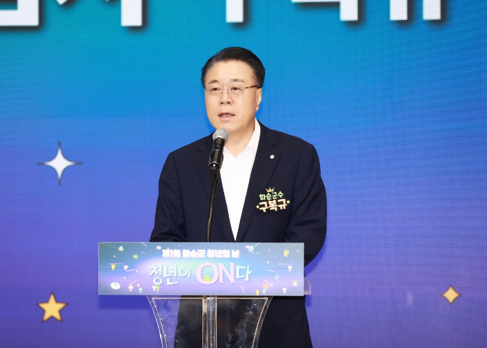 ▲ '제1회 화순군 청년의 날' 행사에서 구복규 화순군수의 기념사 모습