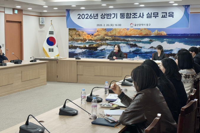 [뉴스앤톡] 울산 동구는 2월 26일 오후 4시 2층 상황실에서 동 행정복지센터 사회복지 담당자 20명을 대상으로 통합 조사 실무 교육을 했다.